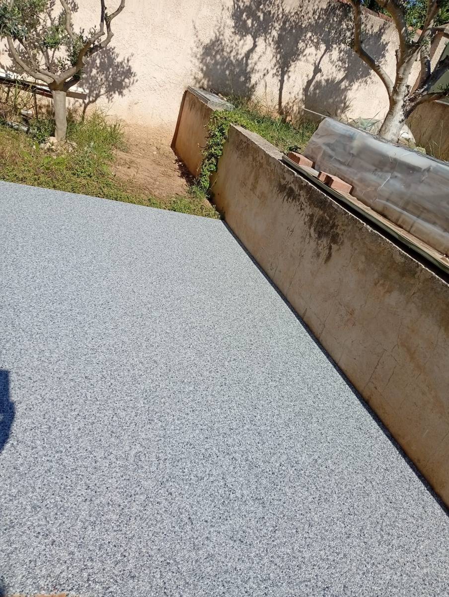 Le rendu final est sobre, élégant et parfaitement intégré à l’architecture de la maison. Ce type de revêtement offre un confort de marche, résiste aux intempéries et ne retient pas l’eau grâce à sa structure drainante.