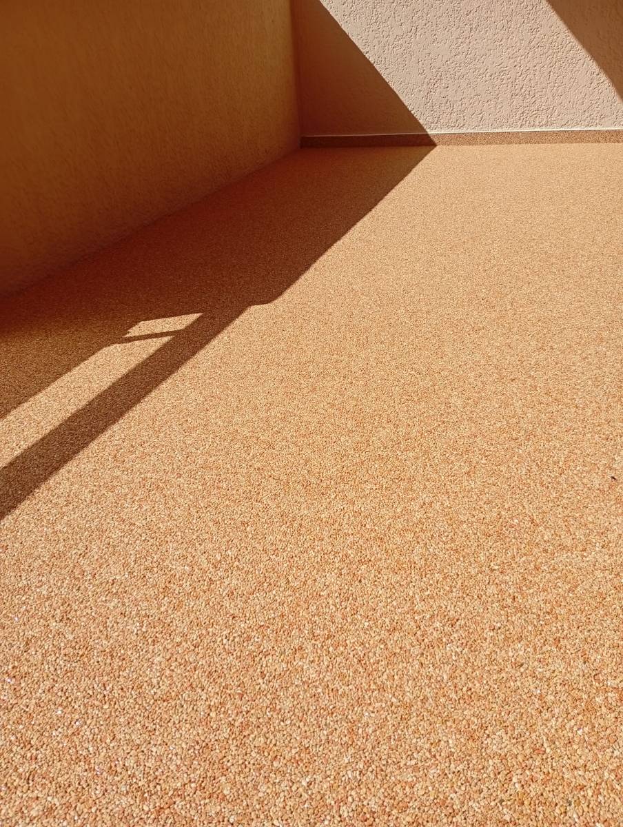 Le tapis de marbre est un mélange de granulats naturels et de résine transparente. Il est appliqué à la taloche sur toute la surface, pour un rendu moderne, uniforme et très résistant.